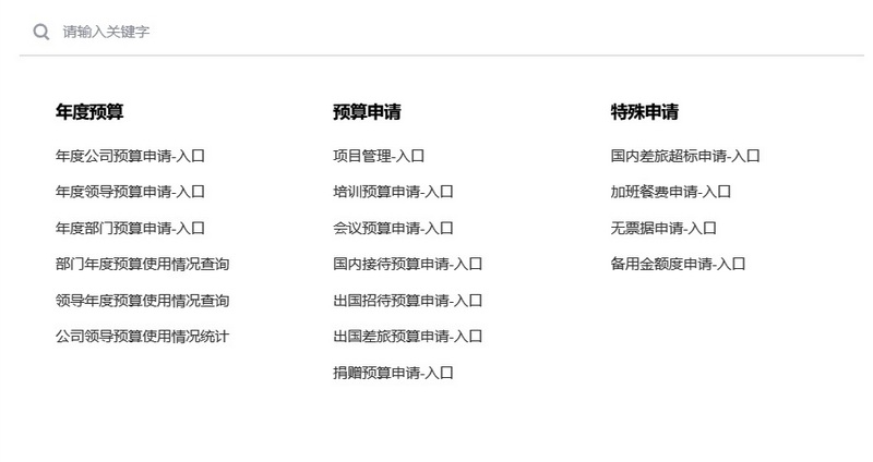 系统包括:公司预算,费用预算,差旅预算,审批管理,文档管理等。